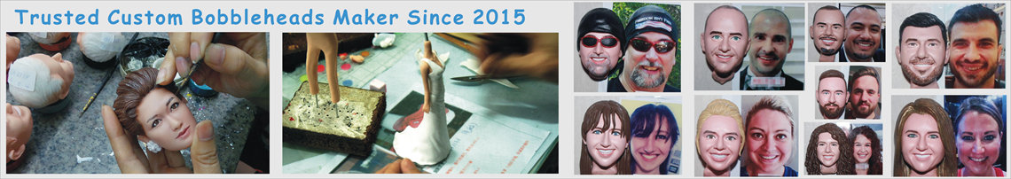 1. Choose a personalized bobbleheads body2. Upload your photos online or email to us later.