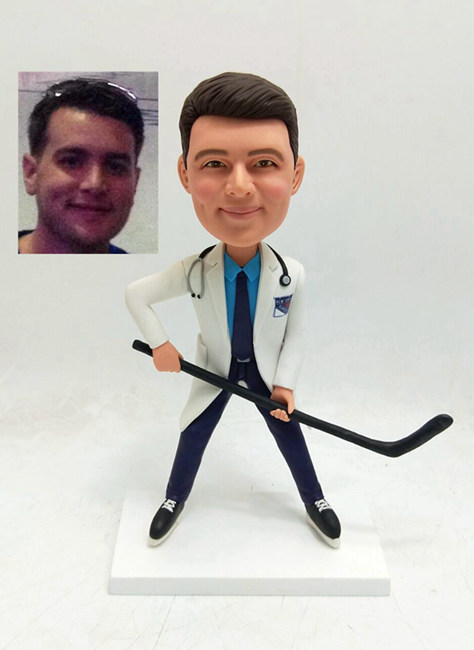 Custom doctor bobblehead with hockeyCustom doctor bobblehead with hockey