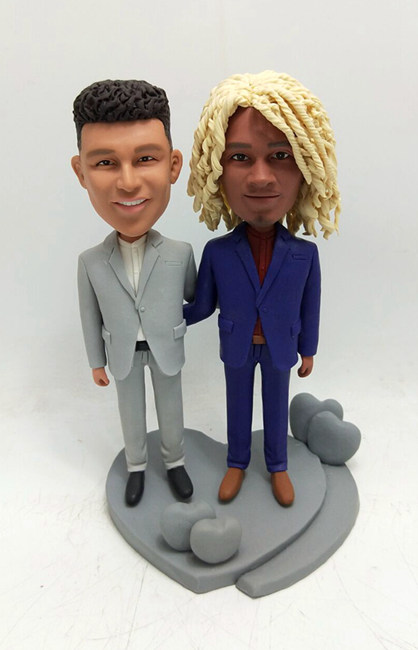 Home    Wedding Bobbleheads    Same Sex Cake Toppers    Custom gay wedding cake topper interracial marriage