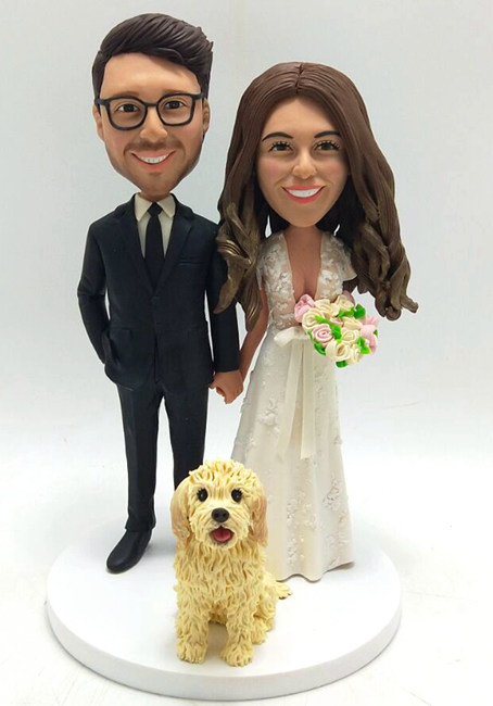 Home    Wedding Bobbleheads    Wedding Cake Toppers    Custom wedding cake topper with dog