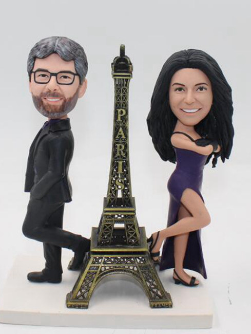 Home    Wedding Bobbleheads    Wedding Cake Toppers    Wedding bobbleheads cake topper with Eiffel Tower