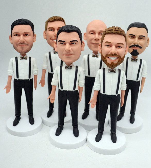 Home    Wedding Bobbleheads    Groomsmen Bobbleheads    Groomsmen gift set of 6 custom bobblehead dolls