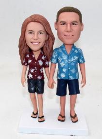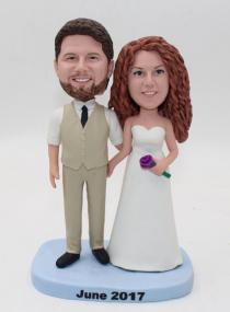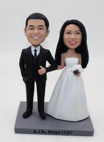 We offer Custom Cake topper for a few of years and we know more about bobblehead cake toppers than anyone. Over 150 styles are offered in this category. Most are best-selling and popular with customers. We have a lot of standard wedding styles with bride wearing dress and groom in suit standing or sitting by each other, holding hands or groom carrying bride.Though more couples prefer to customize a stylish cake topper, a few of couples insist on buying standard bobbleheads to put on the cake. There are also cake toppers with different themes, including indian or canadan wedding cake topper,sports style, japanes and chinese style and musician styles. You can choose the one best suits your clothes you wear on your wedding day and add the accessories like flower, pets, ties,personalized bases and any other options. You can also select the one shows the right occupation of you or the hobby of you and that must be a meaningful option. Bobblehead cake topper, the bobble head feature is so good for a top of cake as the heads is usually bigger on the bodies than normal and that seems both stylish, fun and fashionable. Cake topper is really one of the most important part of the wedding. Everyone would like their bobblehead topper to become the hit of the day. And we will help you realize your wish. What you need to do is trust us and specify your requirement and we will do the rest.